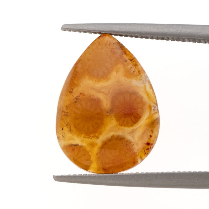 【愛らしい色と繊細な模様つやめく不思議な石。古代の珊瑚が化石になった美しいルースです。】