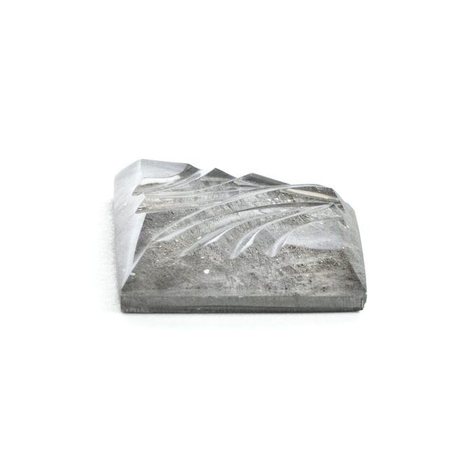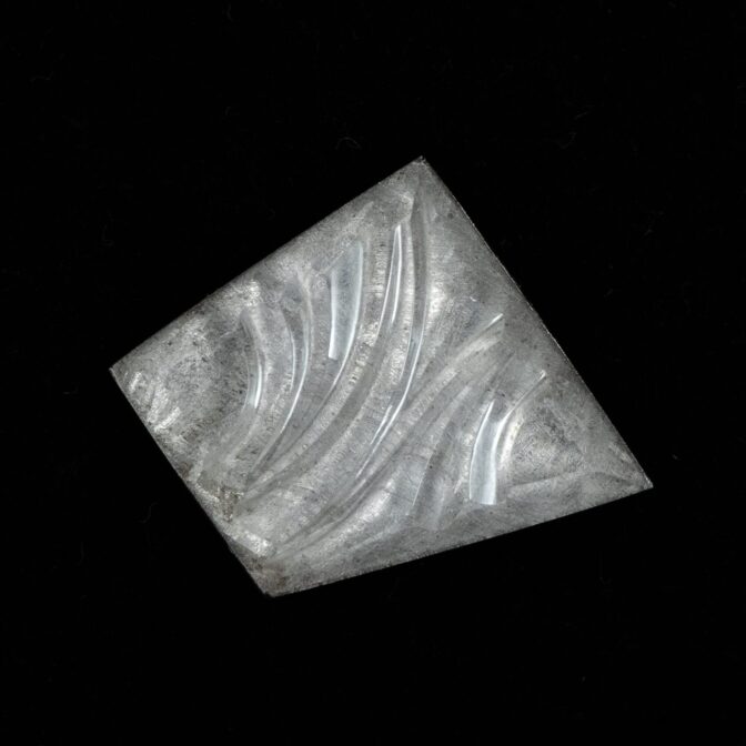 店主の偏愛ポイント:水晶に刻み込まれた、透明で穏やかな波の紋様と、メタリックな輝きのメテオライト。静と動のコントラストを感じさせる芸術作品です。