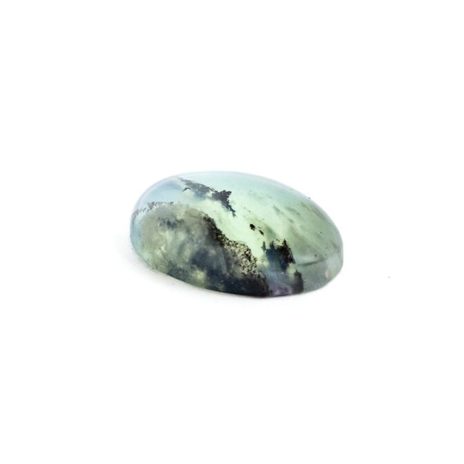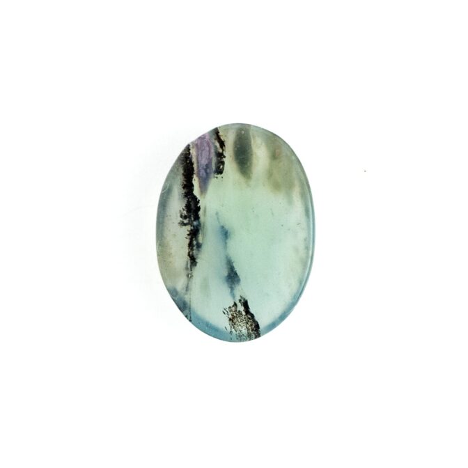 そんな貴重なブルーオパール、今回手に入れたのは、デンドリ模様のインクルージョン入り。大変珍しくも、ますます可愛く味があるロットです。植物のような模様が、ブルーオパールの青色に映え、個性豊かな美しさ。濃くまろやかな色合いと、光を柔らかく反射する透明度の高さにも目を奪われてしまいます。ややネオン感を感じさせるブルーは、パライバトルマリンと同じく銅を含んでいるからとも言われます。潤いを感じさせるほどつやつやに磨かれ、可愛いだけではなく品のある佇まい。大人が持つにふさわしい上質な宝石です。