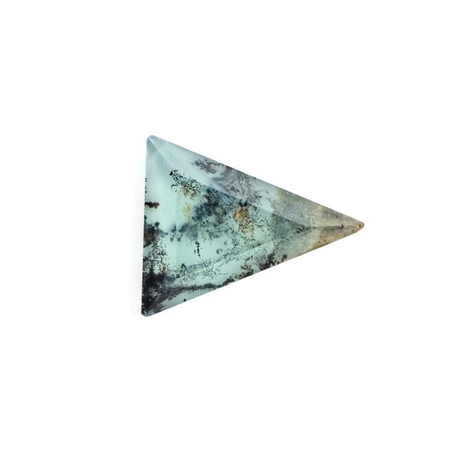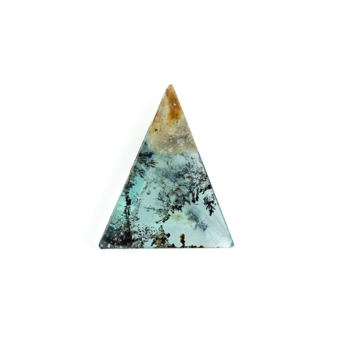 【鮮やかなブルーに輝くオパールに、植物のようにも見えるデンドリが入った希少なルース】