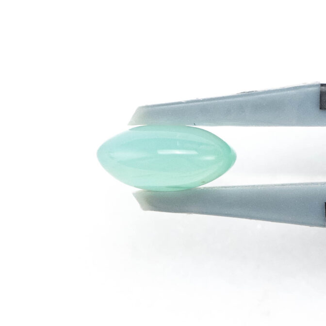 今回ご紹介するブルーオパールは「コモンオパール」です。コモンオパールはピンクオパール・ハニーオパール・ハイアライトオパール等たくさん種類がありますが、その中でもブルーオパールは別格。主な産地は中南米のペルーで、高品質な原石はここから採掘されます。近年は資源の枯渇が進んでおり、良質の原石はほぼ採掘されつくし滅多に市場に出てこないため、質が高いルースは高値で取引されます。