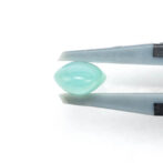 現在手元にある3つのルースの中で最も透明度が高く、柔らかい色合いのルース。ダブルカボションになっており、両面使用可能。透明度が高いので、ほんの少しインクルージョンが見えます。