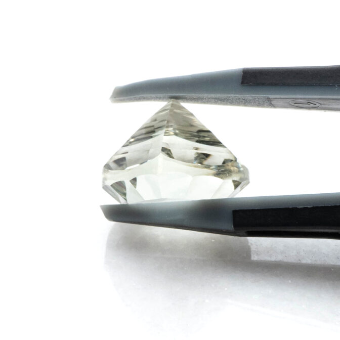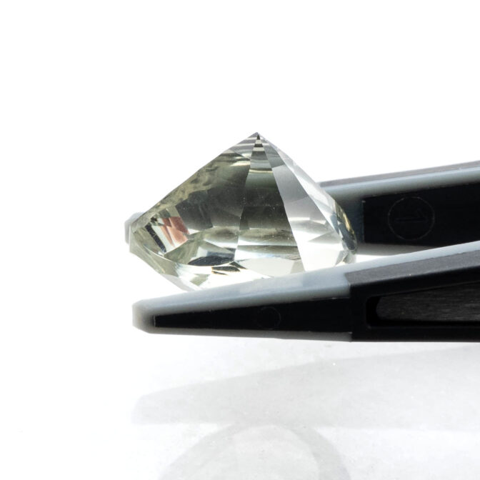 グリーンアメジストとは、その名の通りグリーンのアメジストのこと。実は、グリーンのアメジストは自然界には存在せず、天然での産出は現在のところ報告されていません。天然の紫アメジストを加熱した結果、グリーンに変化したものをグリーンアメジストと称します。とはいえ、アメジストを加熱すると、黄色のシトリンになる場合がほとんどで、美しいグリーンに変化するのはごく稀です。その為、市場での流通量はかなり少なく、大粒でインクルージョンが少ない上質なグリーンアメジストを目にする機会は滅多にありません。