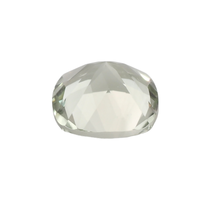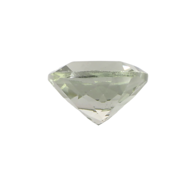プレシオライトとも呼ばれるこちらの石は、ややイエローを帯びた抹茶色。自然界には見られず、紫のアメジストを加熱することによって得られる色です。ほとんどの紫アメジストは加熱をするとブラウンからイエローになり、シトリンと呼ばれることになります。このようなグリーンに変化するアメジストは非常に稀であまり市場には出回りません。