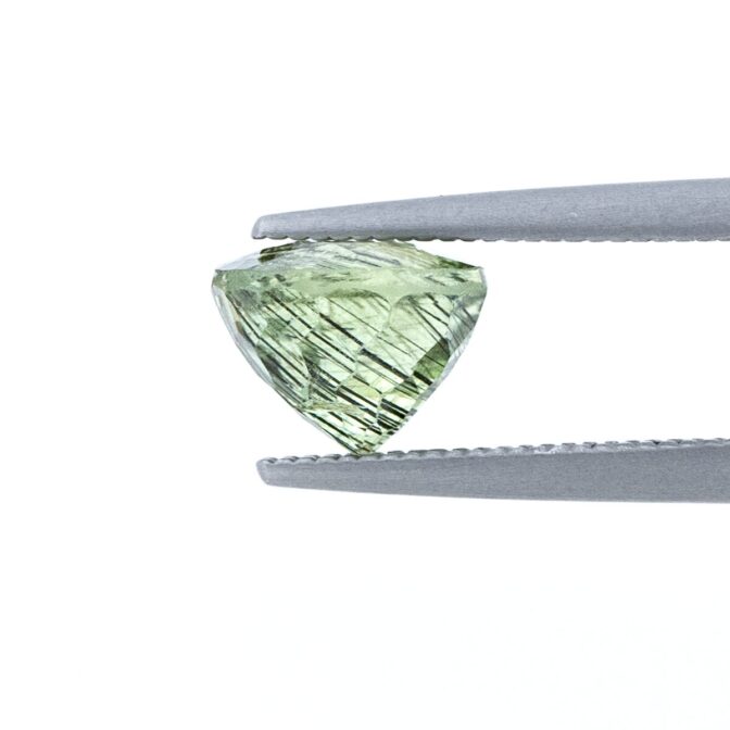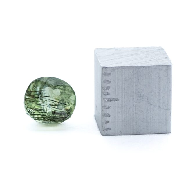 ペリドット自体は特に珍しい石ではありません。しかし、針状の結晶入りとなると流通量が限られており、見かける機会は限られています。世界最大規模のジェムショーである、ツーソンでもほとんど見かけることはありませんでした。入荷のリクエストが非常に多い石でもあるので、ツーソンの広い会場の目立たない場所で、ひっそりと輝いていたロットを買い付けできたのは、紛れもなく幸運だったと思います。