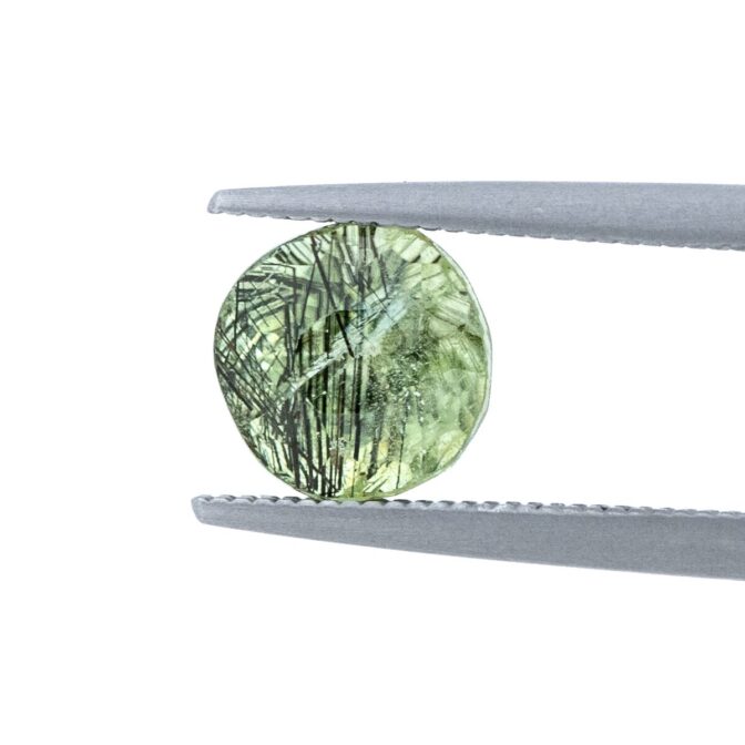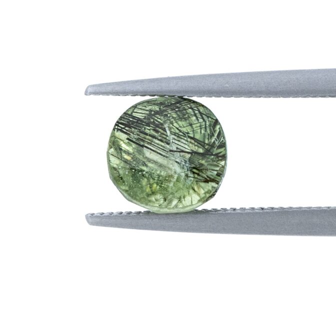 【鮮やかなグリーンに繊細な黒い針が冴える希少な針入りペリドット】