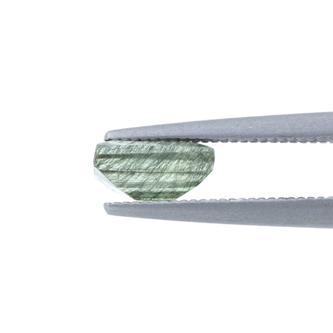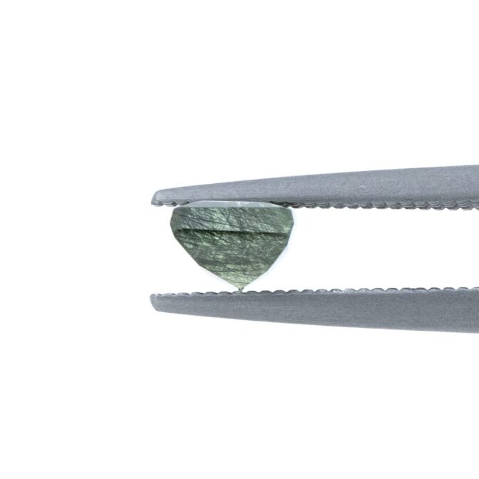 レアなだけでは心動かされることはありませんが、こちらの石には一目惚れ。キリッとした形と大胆なインクルージョン、そして鮮やかなグリーンの美しさは圧巻の味わいです。カットが美しいため、ジュエリー加工にもおすすめ。リングに仕立てれば、個性際立つ深い輝きとインクルージョンの美しさをいつでも手元で眺められますよ。