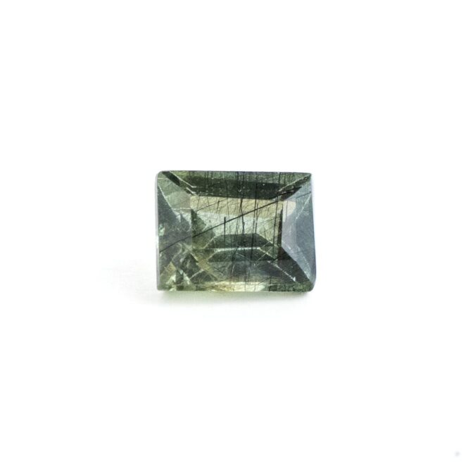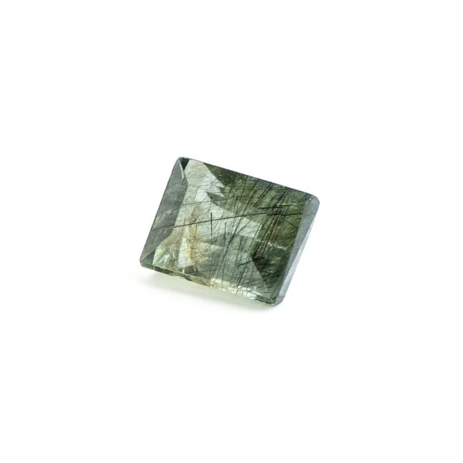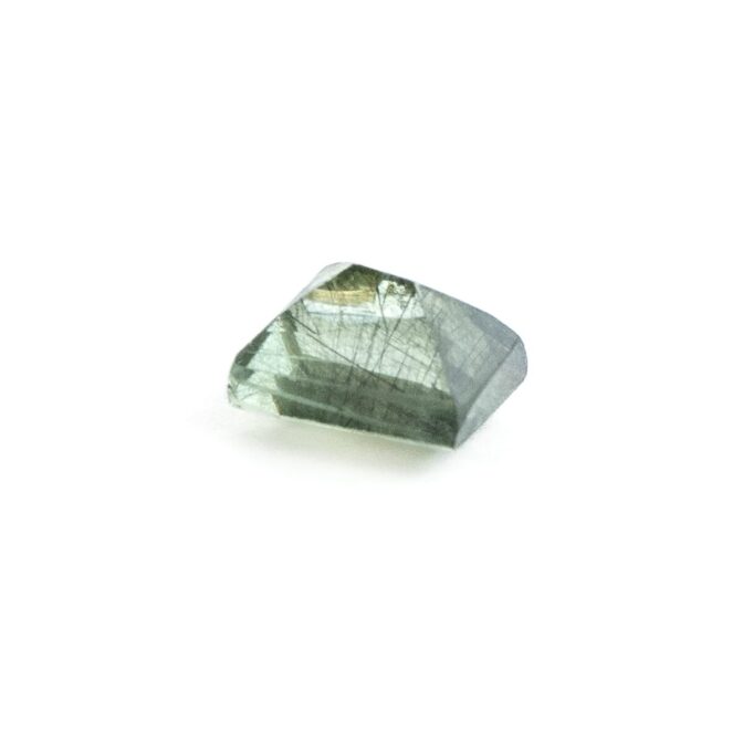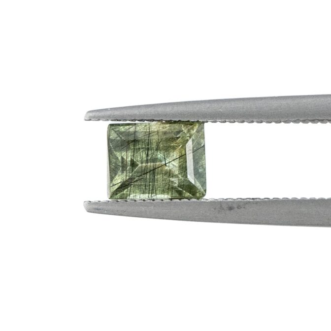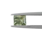 こっくりと深く鮮やかなグリーンが上品にきらめくペリドット。端正なスクエアのカットは気品に溢れ、清々しいシャープな輝きを生み出します。豊かな色合いと透明感が美しいルースの中に黒いルチル状のインクルージョンが入り、さらに希少さを増しています。