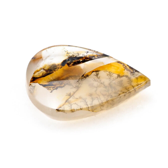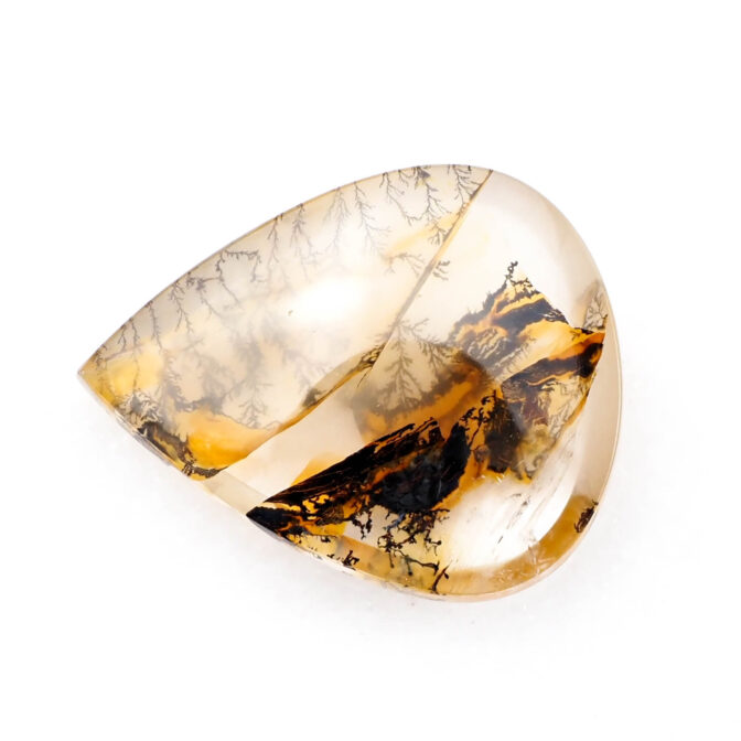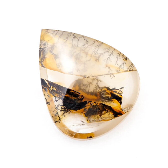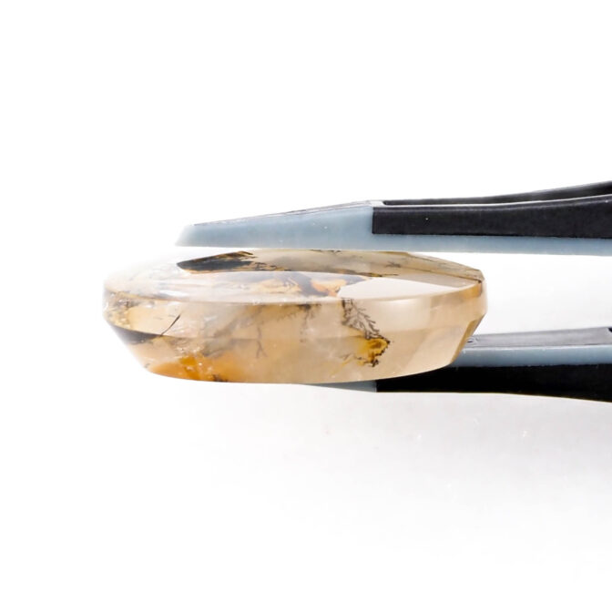 インクルージョンが多い石は傷やクラックがある磨き上がりになるのですが、このページでご紹介しているデンドリティッククォーツは、まっさらでつやつやの質感が美しいルースに仕上げられています。大胆な模様とコントラストを持ちながらも上質感を漂わせるのは磨きの良さがあってこそ。