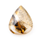 このページでご紹介しているデンドリティッククォーツは、その2つの模様が一つの石の中で融合しているパターンのルースです。柔らかく霞がかかったようなクォーツの奥で、シダのように見える植物が葉を伸ばしています。もう一方では黒く重厚な雰囲気のインクルージョンが捩れるように入り込み、とてもミステリアス。このインクルージョンを包み込むクォーツ部分はとてもクリアなのも、まるで遠近法のような奥行き感を作り出しています。