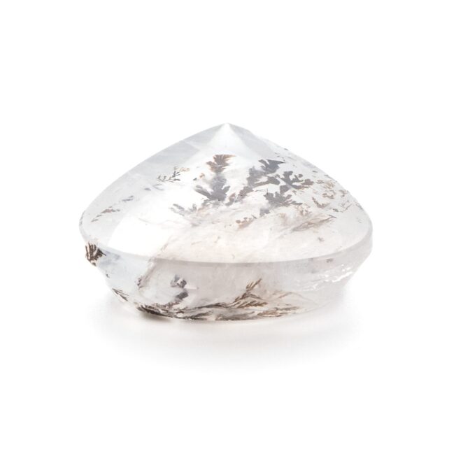 デンドリティッククォーツのようにインクルージョンが多い石は、傷やクラックも多く、あまり質の良さを感じさせない磨き上がりになります。ところが、このページでご紹介しているデンドリティッククォーツは、つやつやと潤んだような質感が美しいルース。全体的に可愛らしい雰囲気ながらも上質感を漂わせているのは、丁寧なカットと研磨を施されているからなのです。