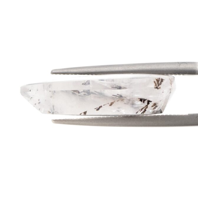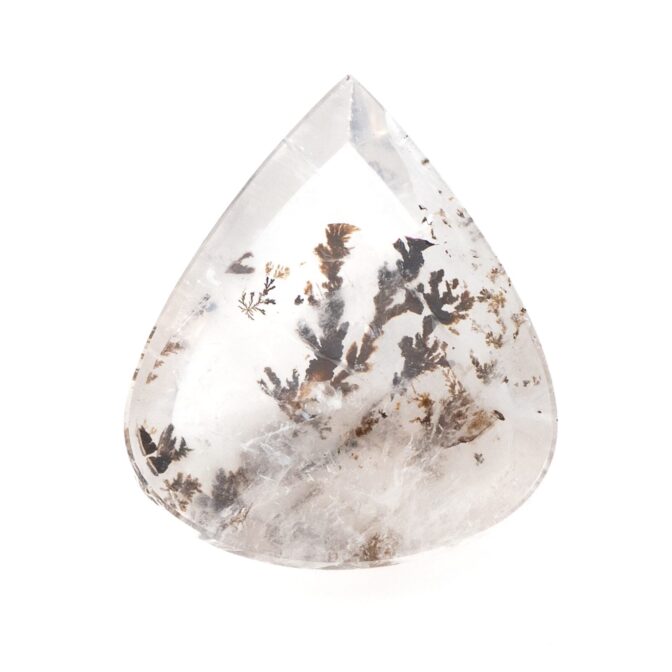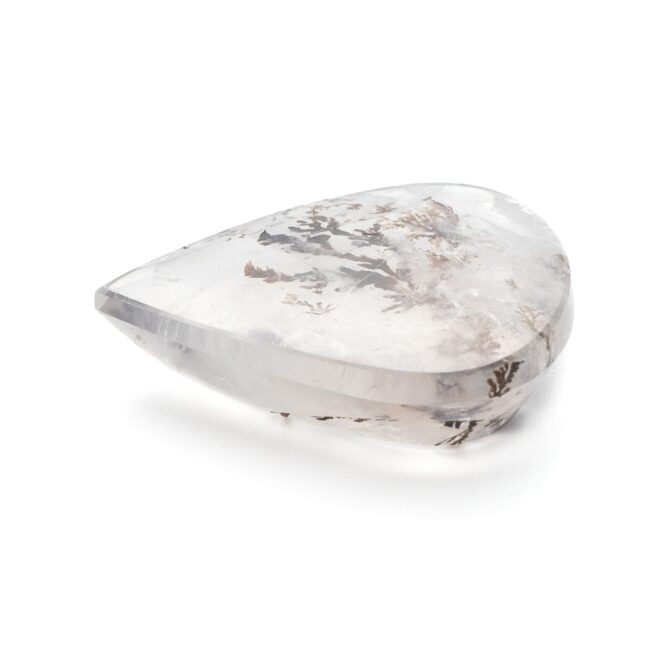 ひと目見て、その可憐な清らかさの虜になってしまったデンドリティッククォーツ。キリッと透明なクォーツの中で、ふんわりと霞に包まれながら佇む植物のようなインクルージョンが、幻想の世界へと誘ってくれます。ふっくらとしたティアドロップシェイプに黒く繊細な内包物が少し。どちらかというとシンプルな構成なのに、見れば見るほど奥深い。飽きのこない美しさがこのルースの真骨頂です。