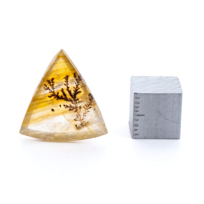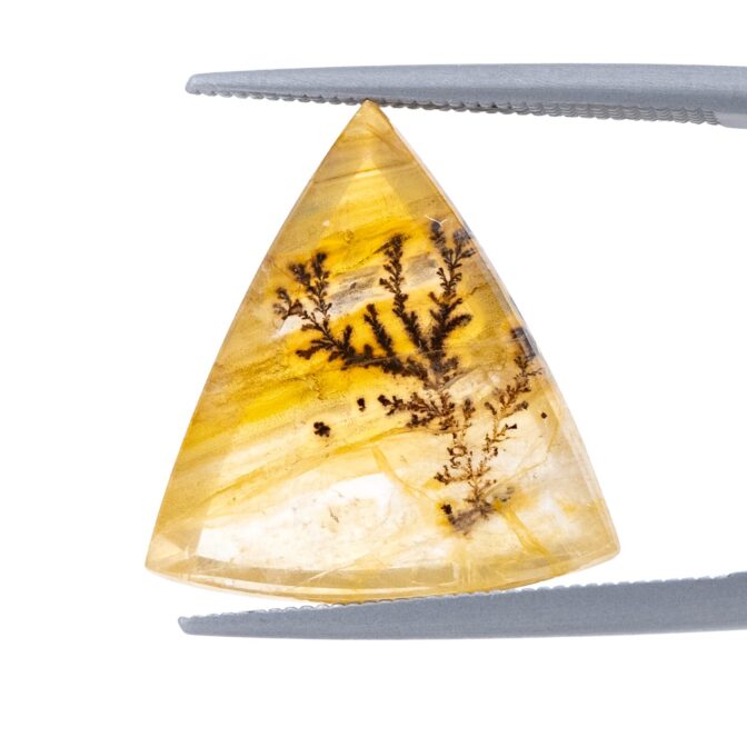 「デンドリ」という言葉のルーツはギリシャ語の「樹形」から来ています。「ティック」とは「シネマティック」「ロマンティック」などの外来語でもお馴染みの「〜のような」を示す接尾語。「デンドリティッククォーツ」とは、まるで植物のような模様を内包したクォーツ(水晶)という意味です。その名の通り、まるで植物をそのまま閉じ込めてしまったような内包物は、見れば見るほど繊細。葉や枝に生えるうぶ毛まで再現されているかのような緻密さで、見れば見るほど不思議で可愛らしくも思えます。人間のいない植物の楽園で、静謐な空気感すらも再現したリアルな風景画を思わせます。