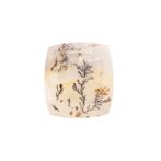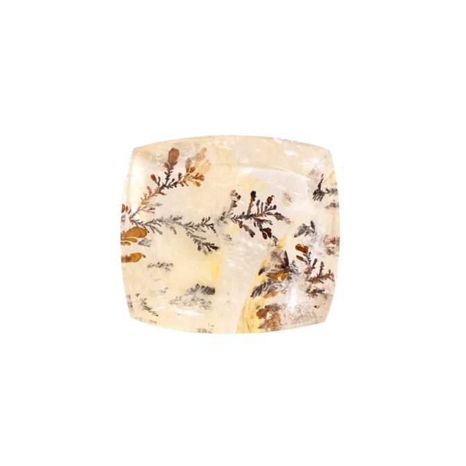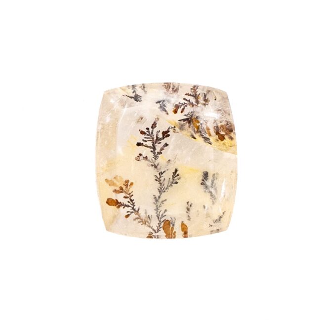 「デンドリ」という言葉のルーツはギリシャ語の「樹形」から来ています。「ティック」とは「シネマティック」「ロマンティック」などの外来語でもお馴染みの「〜のような」を示す接尾語。「デンドリティッククォーツ」とは、まるで植物のような模様を内包したクォーツ(水晶)という意味です。その名の通り、まるで植物をそのまま閉じ込めてしまったような内包物は、見れば見るほど繊細。葉や枝に生えるうぶ毛まで再現されているかのような緻密さで、見れば見るほど不思議で可愛らしくも思えます。人間のいない植物の楽園で、静謐な空気感すらも再現したリアルな風景画を思わせます。