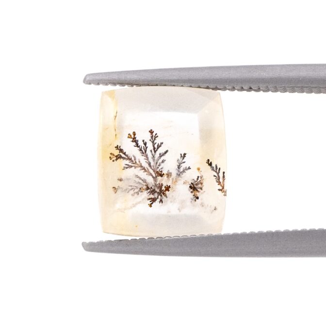 「デンドリ」という言葉のルーツはギリシャ語の「樹形」から来ています。「ティック」とは「シネマティック」「ロマンティック」などの外来語でもお馴染みの「〜のような」を示す接尾語。「デンドリティッククォーツ」とは、まるで植物のような模様を内包したクォーツ(水晶)という意味です。その名の通り、まるで植物をそのまま閉じ込めてしまったような内包物は、見れば見るほど繊細。葉や枝に生えるうぶ毛まで再現されているかのような緻密さで、見れば見るほど不思議で可愛らしくも思えます。人間のいない植物の楽園で、静謐な空気感すらも再現したリアルな風景画を思わせます。