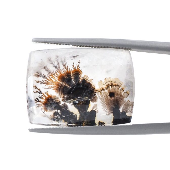 さて、この麗しい大ぶりデンドリティッククォーツ、どうしたらいいのかしら?大きめジュエリーが得意な作家さんの手に委ねても良いですし、いっそルースのまま景色を楽しむのも良し。額に入れてインテリアとして眺めるのも良し。意外にいろいろな楽しみ方がありそうです。