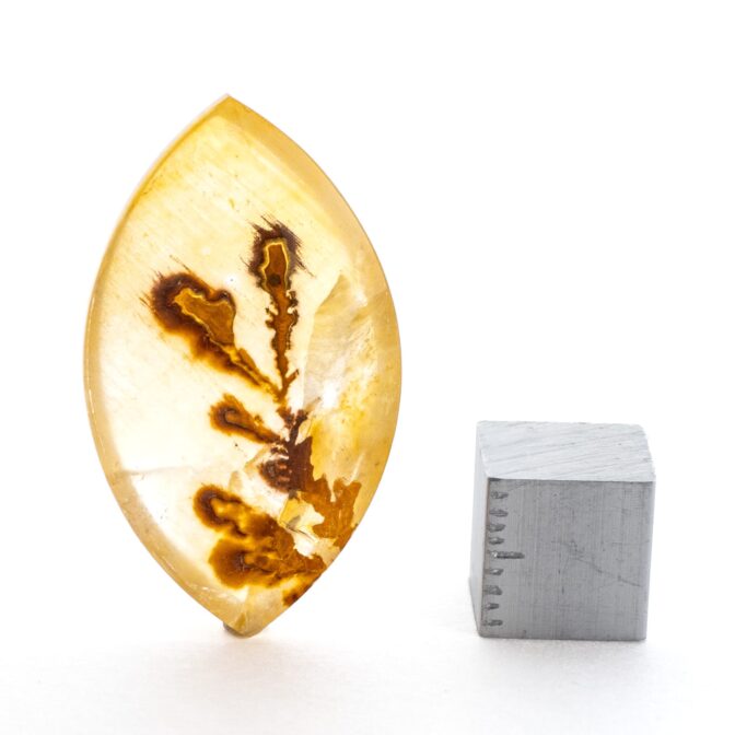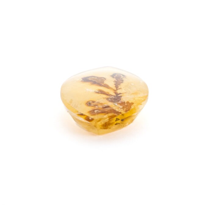 「デンドリ」という言葉のルーツはギリシャ語の「樹形」から来ています。「ティック」とは「シネマティック」「ロマンティック」などの外来語でもお馴染みの「〜のような」を示す接尾語。「デンドリティッククォーツ」とは、まるで植物のような模様を内包したクォーツ(水晶)という意味です。その名の通り、まるで植物をそのまま閉じ込めてしまったような内包物は、見れば見るほど繊細。葉や枝に生えるうぶ毛まで再現されているかのような緻密さで、見れば見るほど不思議で可愛らしくも思えます。人間のいない植物の楽園で、静謐な空気感すらも再現したリアルな風景画を思わせます。
