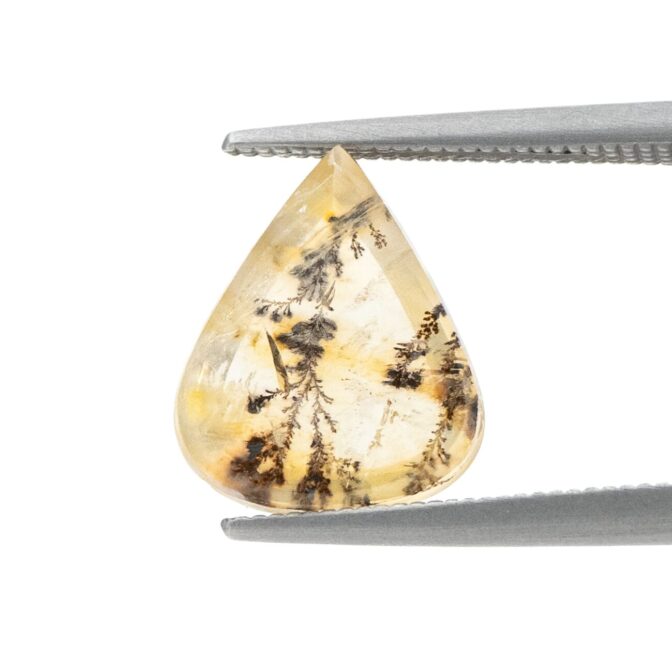 柔らかく生い茂る植物のような模様をもつデンドリティッククォーツ。向こう側の景色をふんわり透かす透明なクォーツの中で、生命力あふれるインクルージョンがいきいきと輝いています。柔らかい曲線で構成されたシェイプが、クォーツのもつパキッとした印象を和らげ、少し抜け感のある可愛さを添えています。緻密に折り重なるインクルージョンは、程よいバランスで配置され、風になびく大樹の枝のよう。あえてシンプルな色味を中心にセレクトし、飽きのこない奥深さで、上質な繊細さを持ち合わせる個性的なルースです。