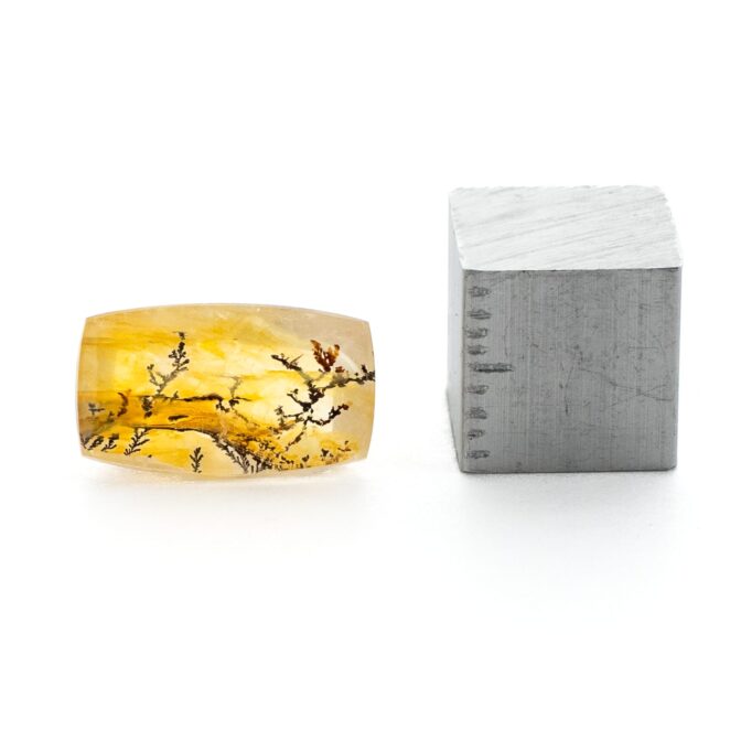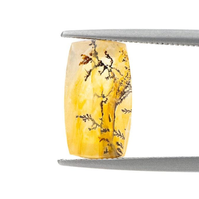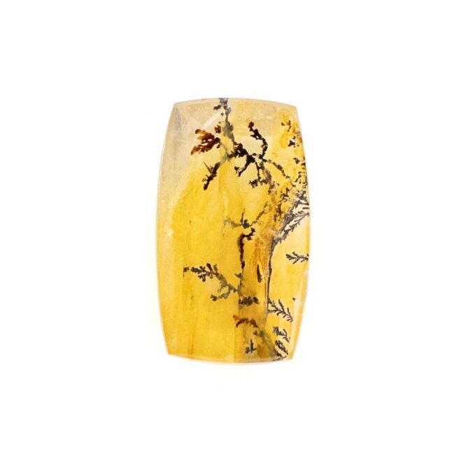 「デンドリ」という言葉のルーツはギリシャ語の「樹形」から来ています。「ティック」とは「シネマティック」「ロマンティック」などの外来語でもお馴染みの「〜のような」を示す接尾語。「デンドリティッククォーツ」とは、まるで植物のような模様を内包したクォーツ(水晶)という意味です。その名の通り、まるで植物をそのまま閉じ込めてしまったような内包物は、見れば見るほど繊細。葉や枝に生えるうぶ毛まで再現されているかのような緻密さで、見れば見るほど不思議で可愛らしくも思えます。人間のいない植物の楽園で、静謐な空気感すらも再現したリアルな風景画を思わせます。