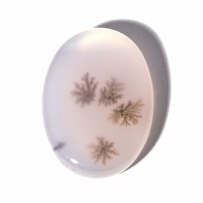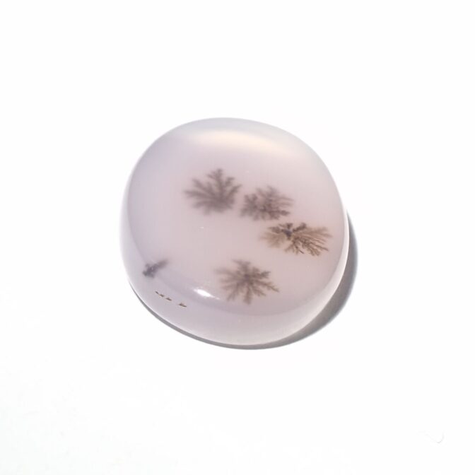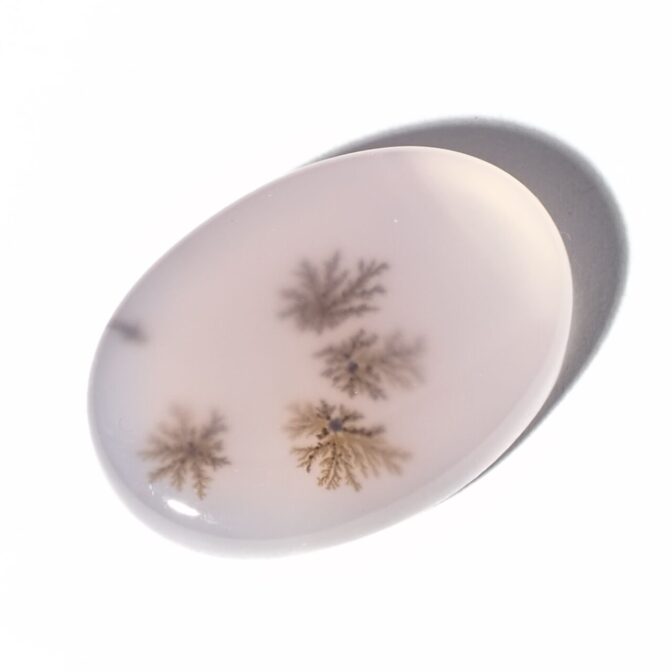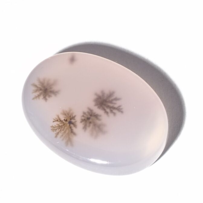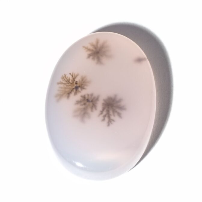 不思議な模様のデンドリティックアゲートは本当に植物が閉じ込められているわけではなく、茶色や黒色の鉄やマンガンの内包物が石の結晶の間に滲み出て形成されます。分かってはいても本当に植物ではないのか疑ってしまう精巧さ。自然が作り出した可愛らしい模様です。