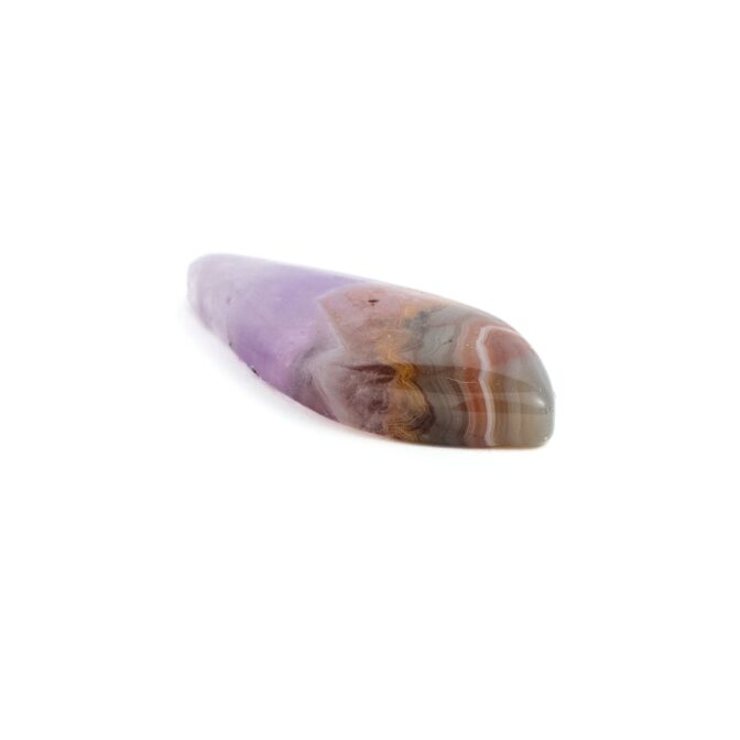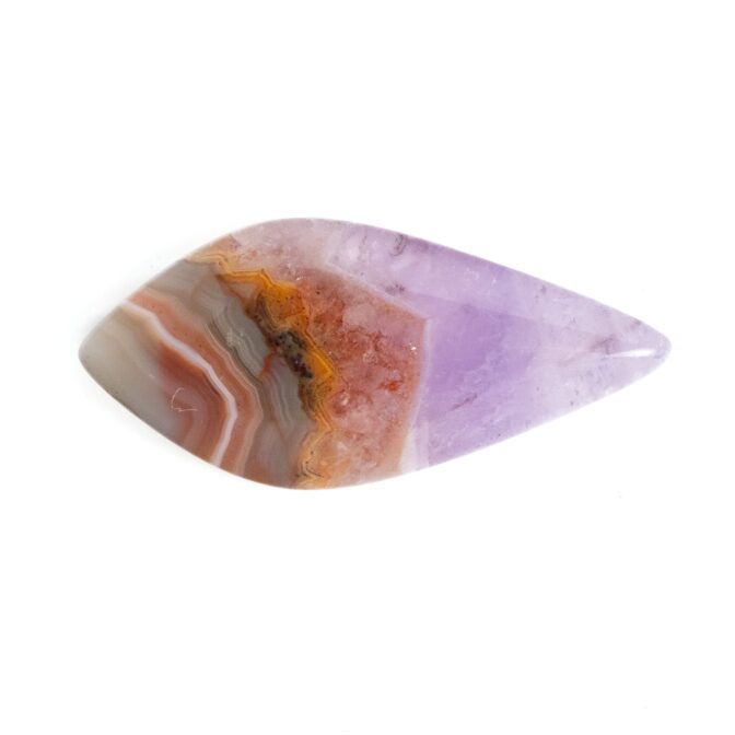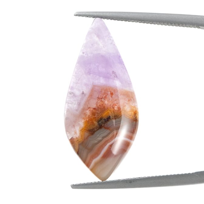【複雑な模様のアゲートと、薄紫の繊細なアメジスト。対照的な風合いが魅力のルースです。】