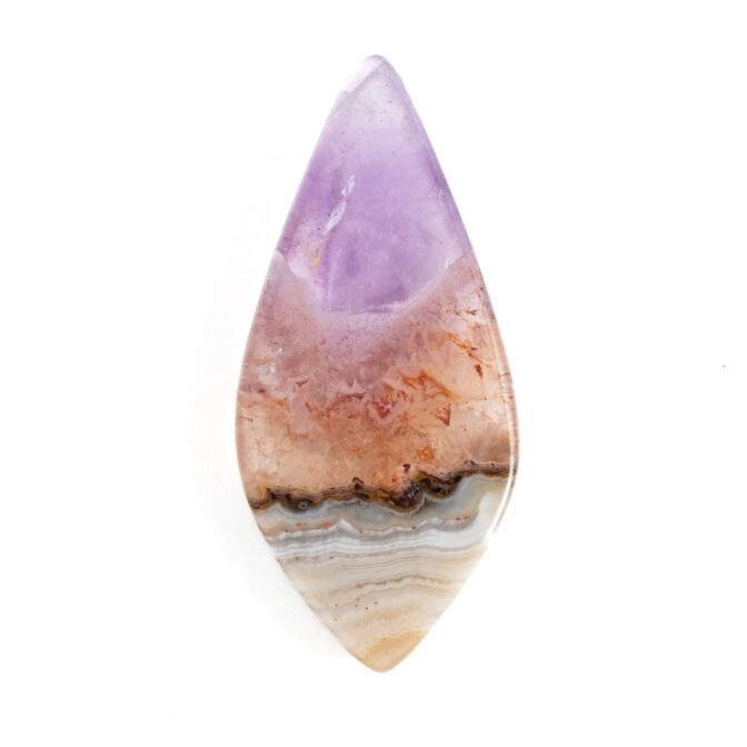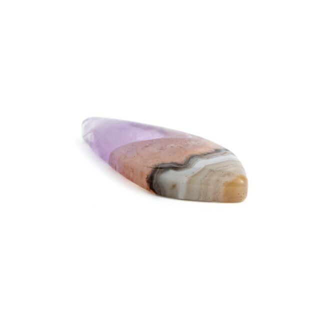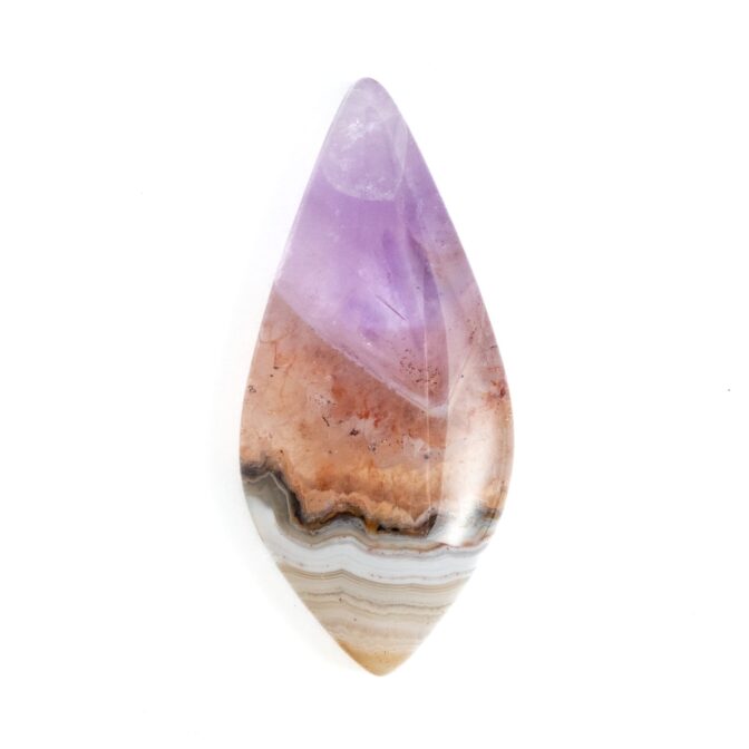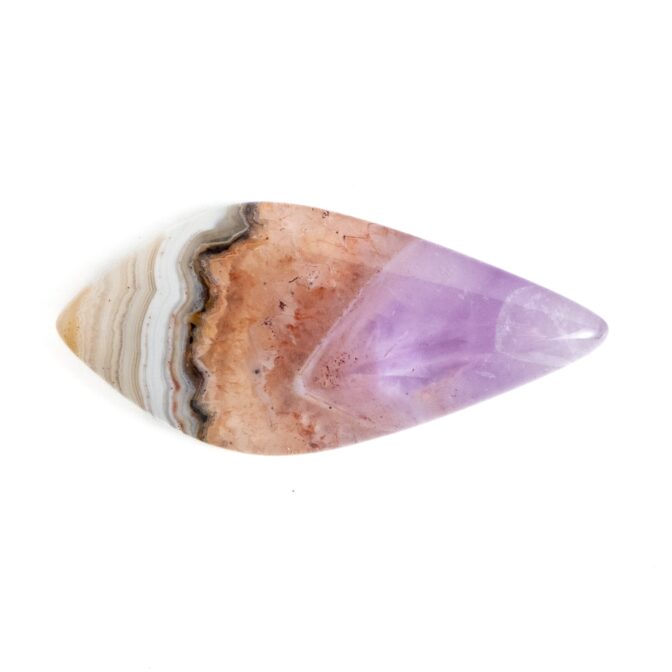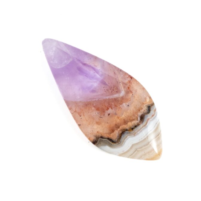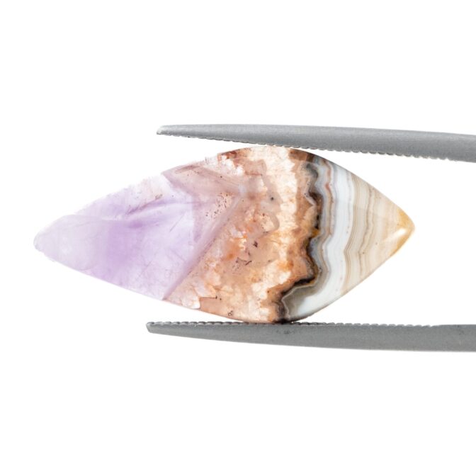 【複雑な模様のアゲートと、薄紫の繊細なアメジスト。対照的な風合いが魅力のルースです。】