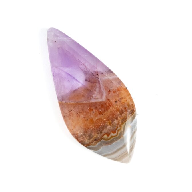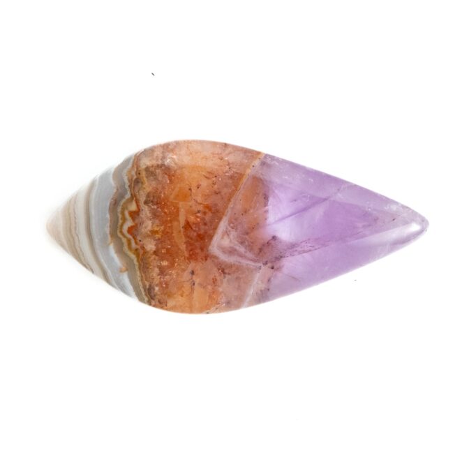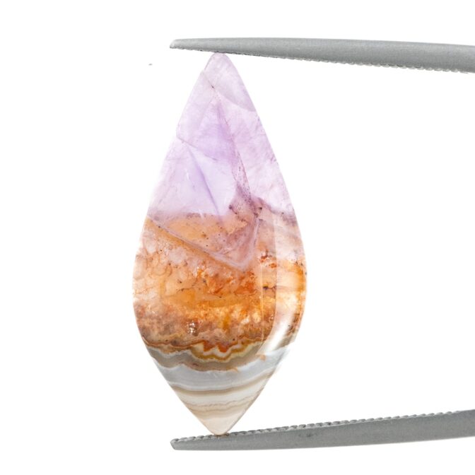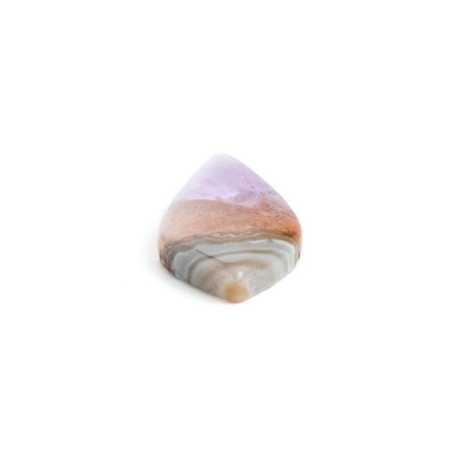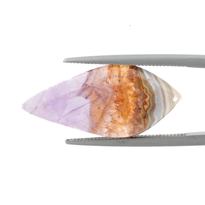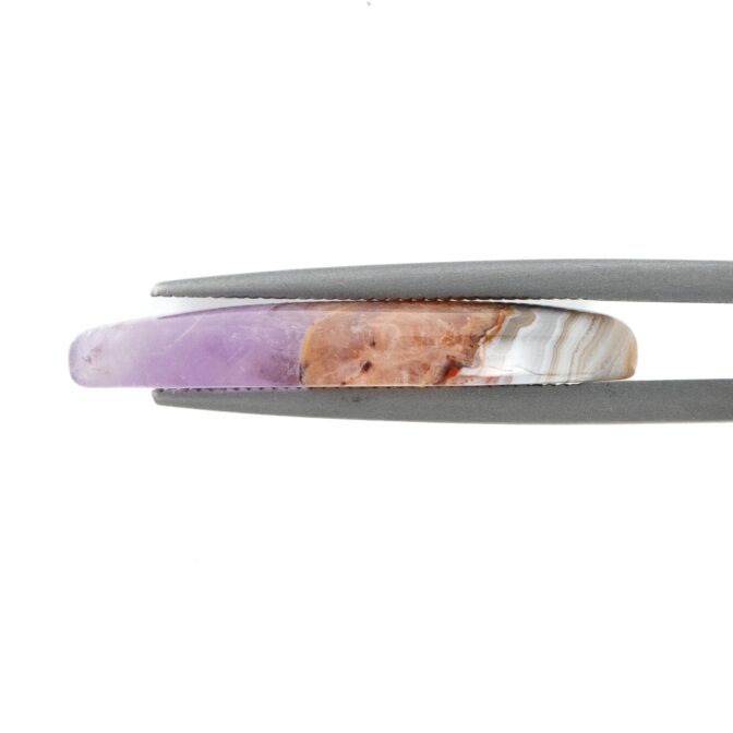 【複雑な模様のアゲートと、薄紫の繊細なアメジスト。対照的な風合いが魅力のルースです。】