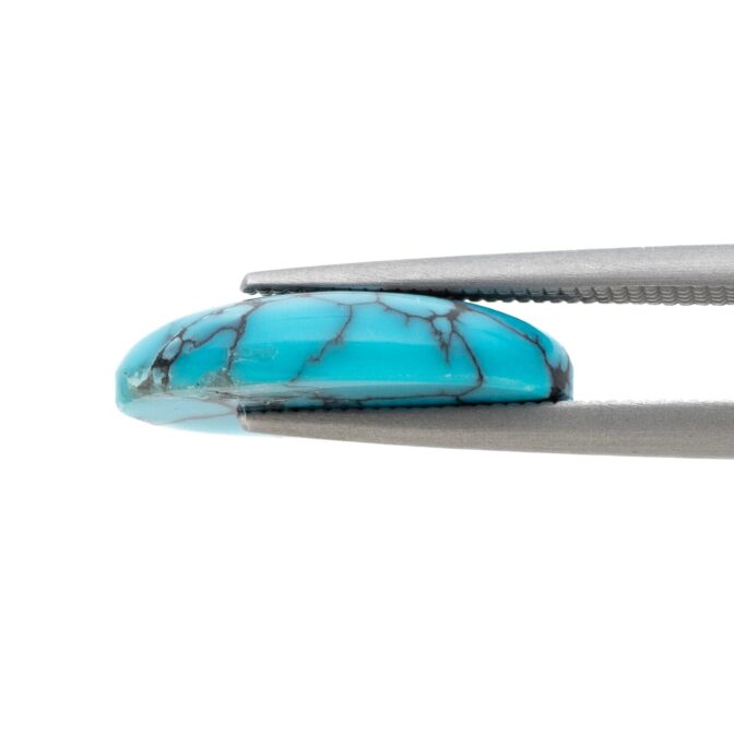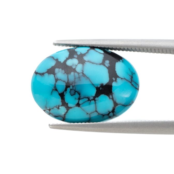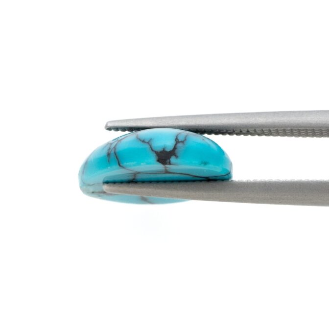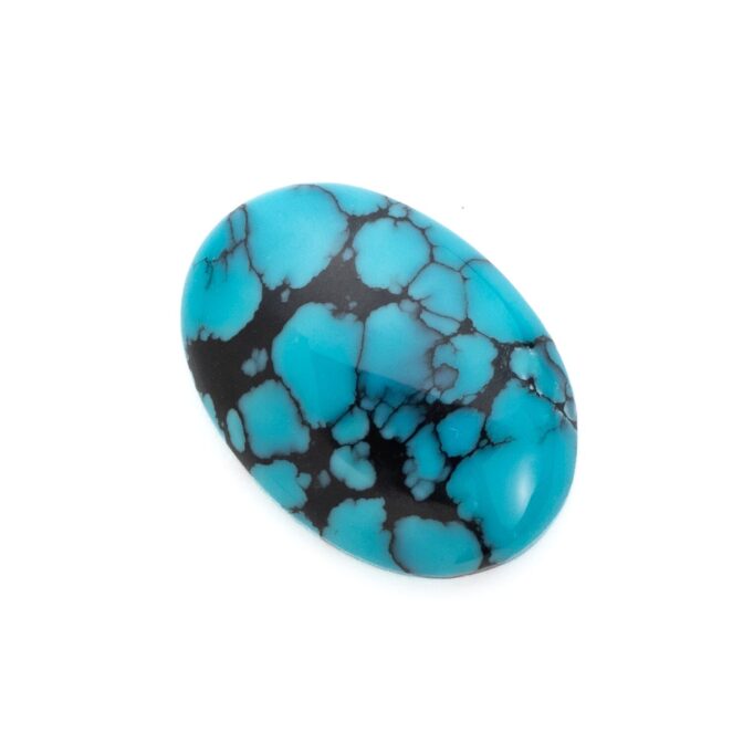 【正統派ターコイズブルー。黒い模様とのコントラストがきりりと美しいルースです。】