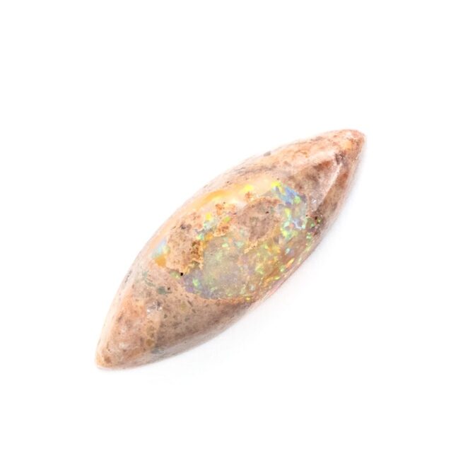 【ベージュの母岩から光り輝くオパールがのぞく美しくも個性的なルース】