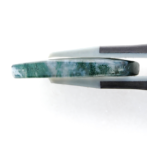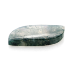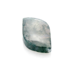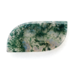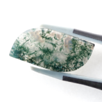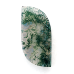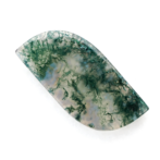 このページでご紹介しているモスアゲートは、クォーツと見紛うほど透明感あふれるアゲートの中に、苔にも例えられるディープグリーンのインクルージョンがぎっしりと入り込んでいます。原石の形を活かしたフリーシェイプで、デザイン性の高いピースに仕上がっています。ところどころに乳白色のふんわりとしたインクルージョンが散らばっていおり、アゲートらしさも兼ね備えたルースです。この模様のバランスは一点ものならではで、他の人と被ることが全くないのも嬉しいポイント。一期一会の出会いは運命を感じさせます。