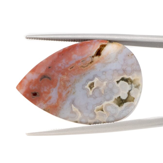 カルセドニー(石英の一種という異説もあり)の中に様々なインクルージョンが入り込むことによって模様を形作る美しい石、ジャスパー。世界中にたくさんの産地が散らばり、採掘される土地によってさまざまな色や模様の違いが楽しめる面白い石でもあります。限られた地域にしかない独特の色や模様を持つ、一部のジャスパーは大変レアな存在です。アメリカのオレゴン州で採れるモリソナイト、インドネシアで採れるマリガノジャスパー、そしてマダガスカルで採れるオーシャンジャスパーなどがそれにあたります。これらの石は産地限定のため、時に探しだすことが難しく、普通のジャスパーより高値で取引されることがあります。