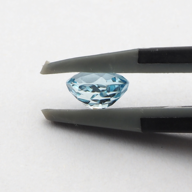 この日、買い付けのお目当てはアクアマリンではありませんでした。予算を順調に使い果たしたあとのこと。ふらりと訪れた業者さんの店頭に並んだ、たくさんのアクアマリン。何気なく目をやるとこの石だけ色が深く、ひときわ輝いていました。長年探し求めていた色を見つけ、思わず手に取ったのがこのページでご紹介しているルースです。