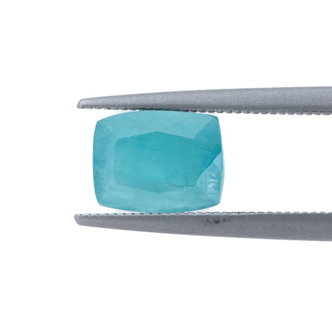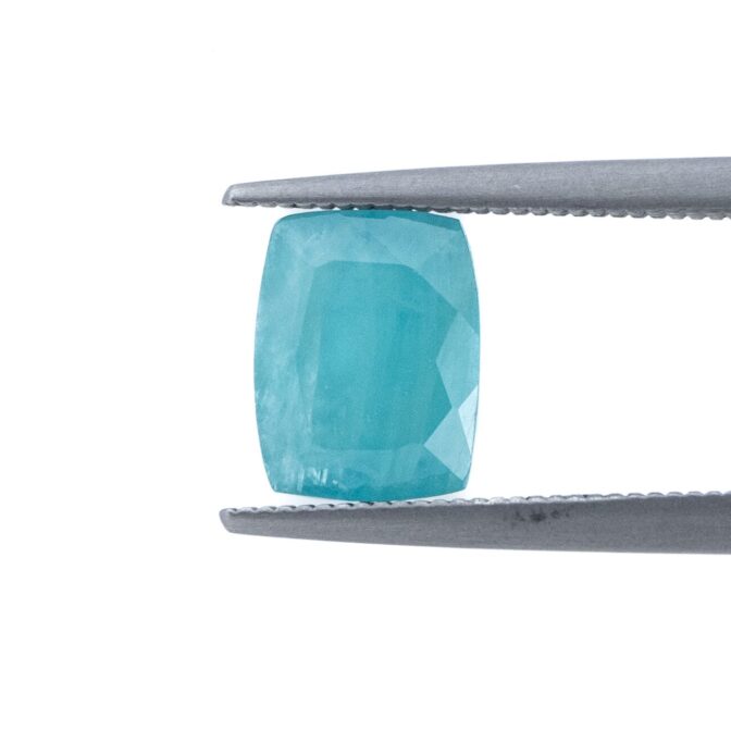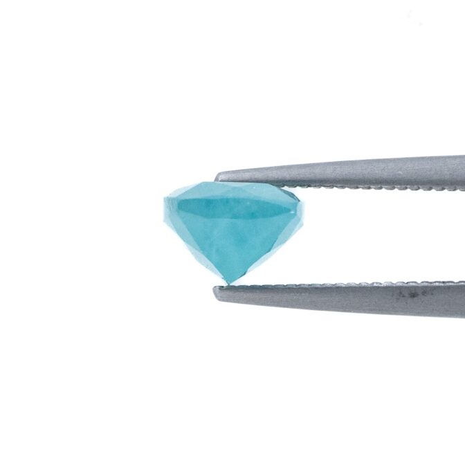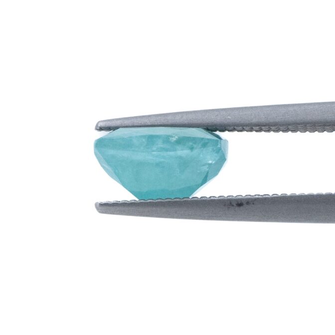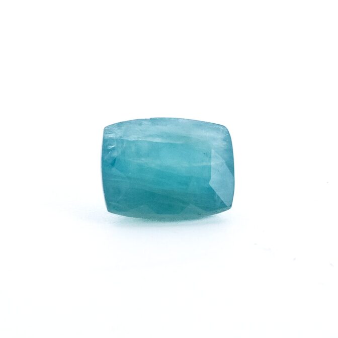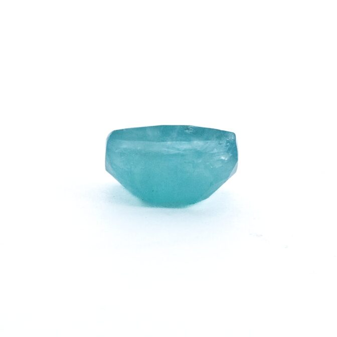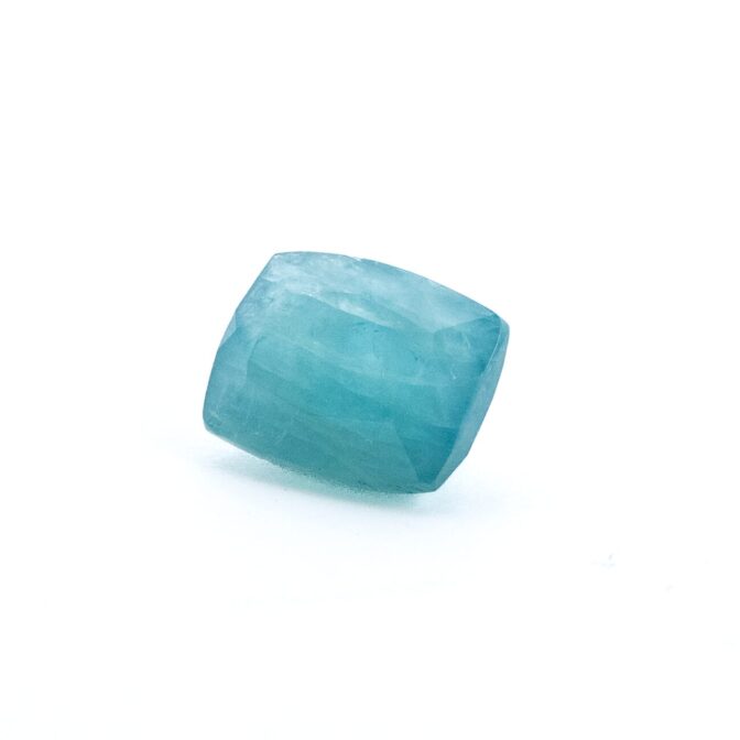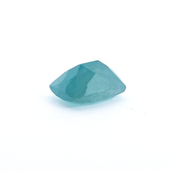 グランディディエライトはインクルージョンが多く、原石は研磨の時点で大変リスクが高いので、大粒のファセットカットに仕上げるのはとても困難。このページでご紹介しているルースは、原石の質の良さもさることながら、カットの端正さにも魅了されます。きっちりと形よくカットされたファセットカットは、宝石らしい輝きに満ちた海の水を、そのまま固めてしまったような爽やかさと美しいきらめきで、見る人を虜にする輝きを宿しています。