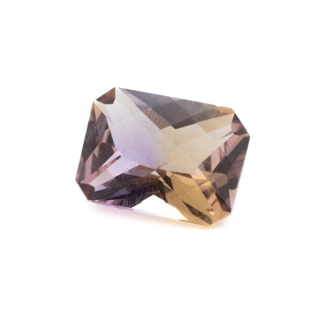 一つの結晶の中に、アメジストとシトリンが共生している不思議な石、アメトリン。パープルとイエローのグラデーションが美しい人気のルースです。