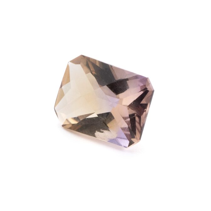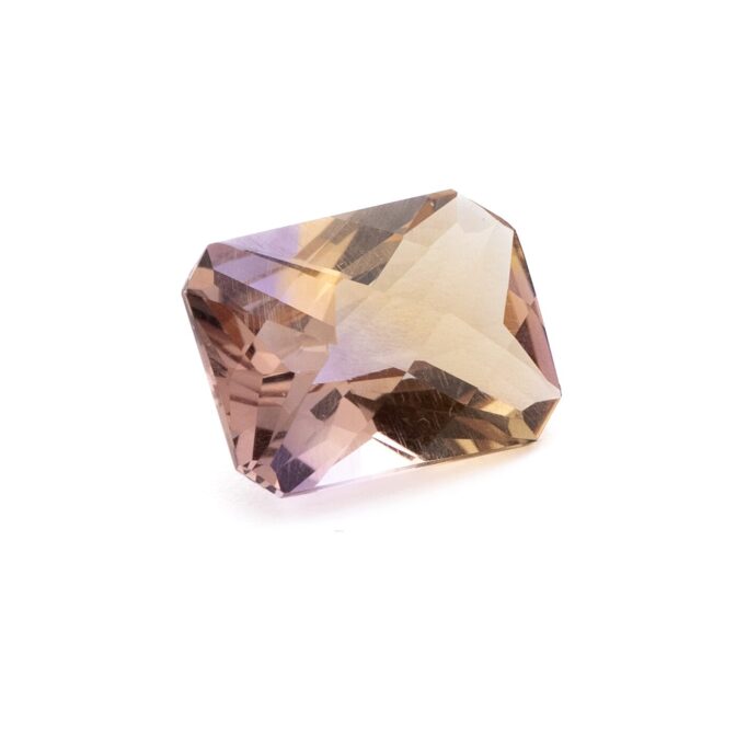 これは私の偏見かもしれませんが、クォーツ系の石って、とてもきっちりとした四角形(エメラルドカットと呼ばれます。)に磨かれていることが多い気がします。特にアメトリンは縦と横、比率の違いはあれど、ほとんど同じようなエメラルドカットで仕上げられてるものがほとんど。それはそれで美しく上品だし、色もきちんと見えて良いのだけれど、もうすでに持っている方には物足りないのではないのかしら?と思ってしまいます。