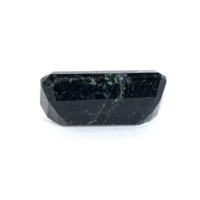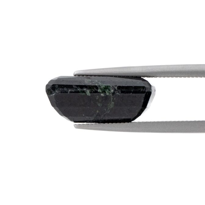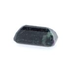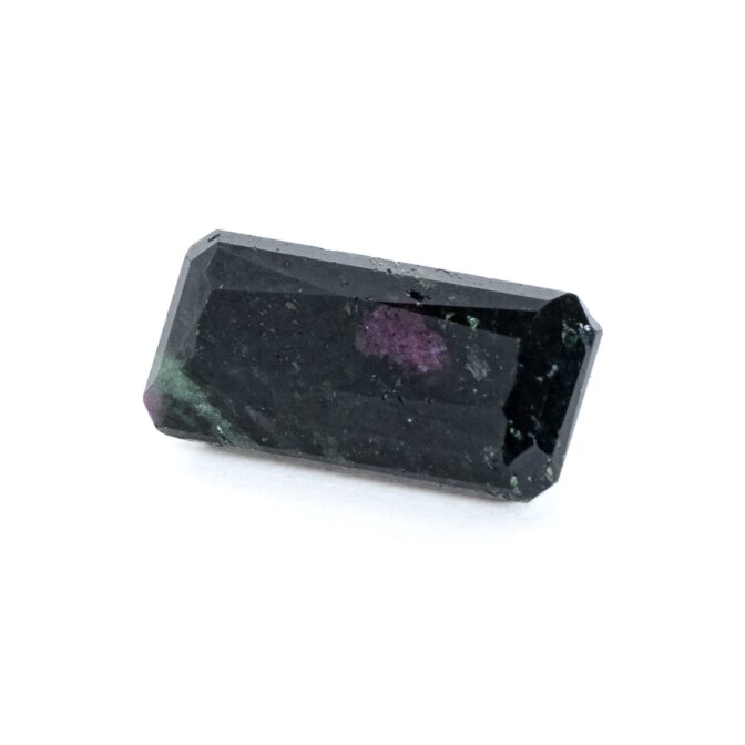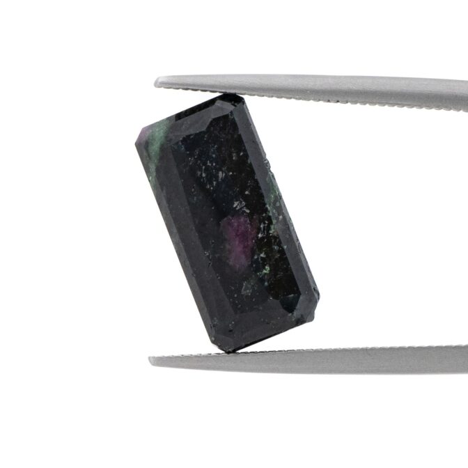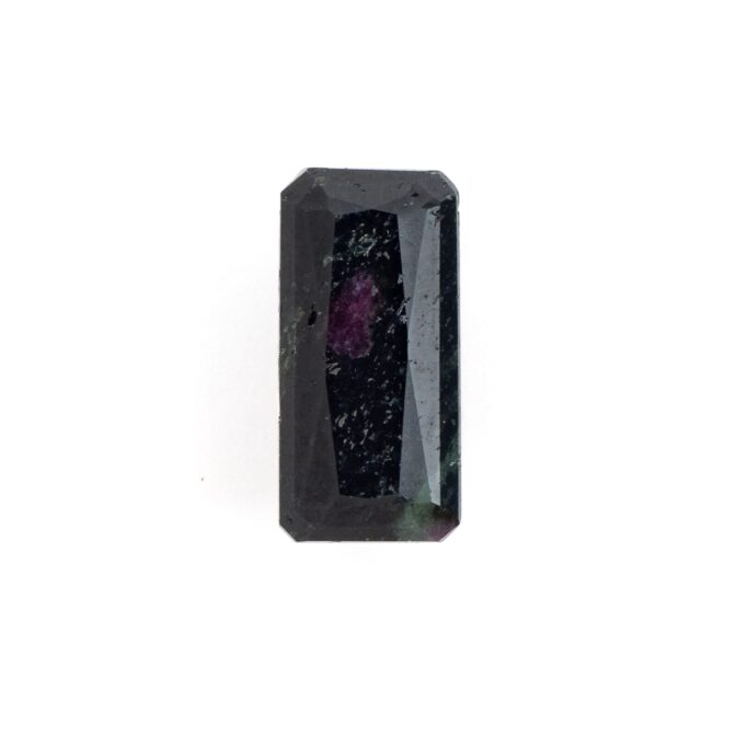ルビーインゾイサイトにファセットを施すのはさらにさらに至難の技。でも、それをあえてやっている研磨士さんがタイにはいらっしゃるのです。さすが色石の集積地。どちらかというと素朴な可愛らしさを持つ石なのですが、ピシリとシャープなシザーカットカットだと、途端にクールで洗練された雰囲気を身にまとい始めます。こちらのルースは特に、グリーンではなくブラックのゾイサイトとほんの少しのルビーの混ざり具合が最高にハンサム。端の方にはチラリとグリーンのゾイサイトもあり、色合いもバランスも完璧。磨いた方のセンスが光る一点ものです。