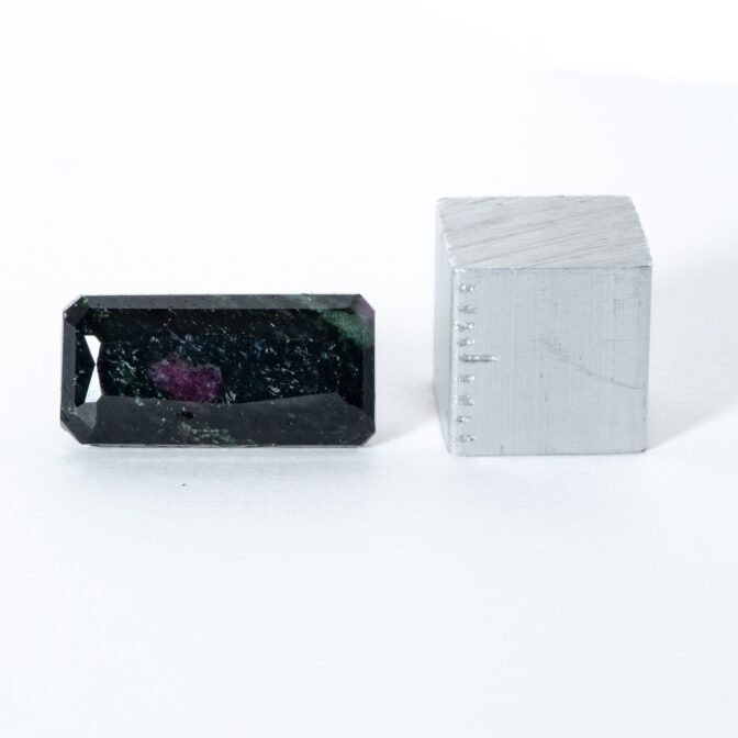 【真っ赤なルビーレッドとブラックゾイサイトの漆黒が鮮やかでクールな麗しいルース】