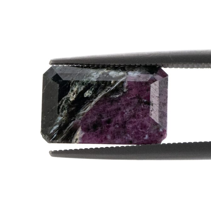 【真っ赤なルビーレッドとブラックゾイサイトの漆黒が鮮やかでクールな麗しいルース】