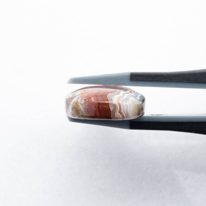 たくさんあるアゲートの仲間の中でも人気が高い石で、その模様の美しさは一度見たら忘れられないインパクト。折り重なる地層を小さな大地のカケラにギュッと閉じ込めたようなスケール感があります。クレイジーと名がつくほど気ままな曲線はまさに大地のいたずら。それでいてどこか温かみのある色合いなのは、大地が作り上げた芸術品だからでしょうか?