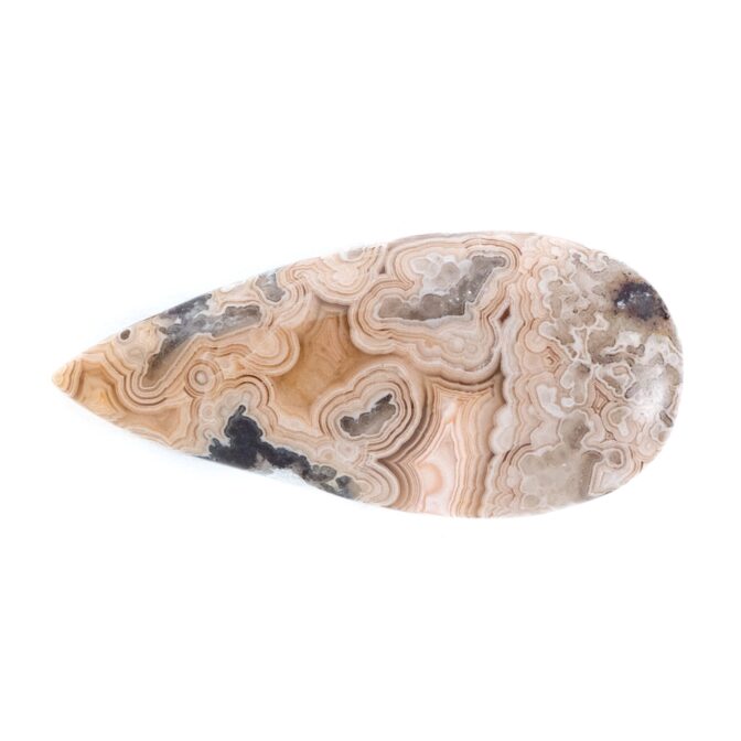 たくさんあるアゲートの仲間の中でも人気が高い石で、その模様の美しさは一度見たら忘れられないインパクト。折り重なる地層を小さな大地のカケラにギュッと閉じ込めたようなスケール感があります。クレイジーと名がつくほど気ままな曲線はまさに大地のいたずら。それでいてどこか温かみのある色合いなのは、大地が作り上げた芸術品だからでしょうか?