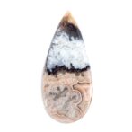 繊細な模様が幾重にも連なり、レースのような柄を織りなすクレイジーレースアゲート。華やかなピンク色は桜のようにほんのりと美しく、情緒があります。それなのに、緻密に折り重なった曲線が描き出す世界観がちょっとカオスなところも見どころです。ポップに傾きがちなクレイジーレースアゲートですが、渋く落ち着いた色合いとランダムな模様には静かな迫力があり、落ち着いた魅力と深みに魅了されてしまいます。