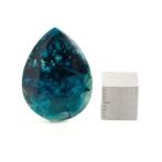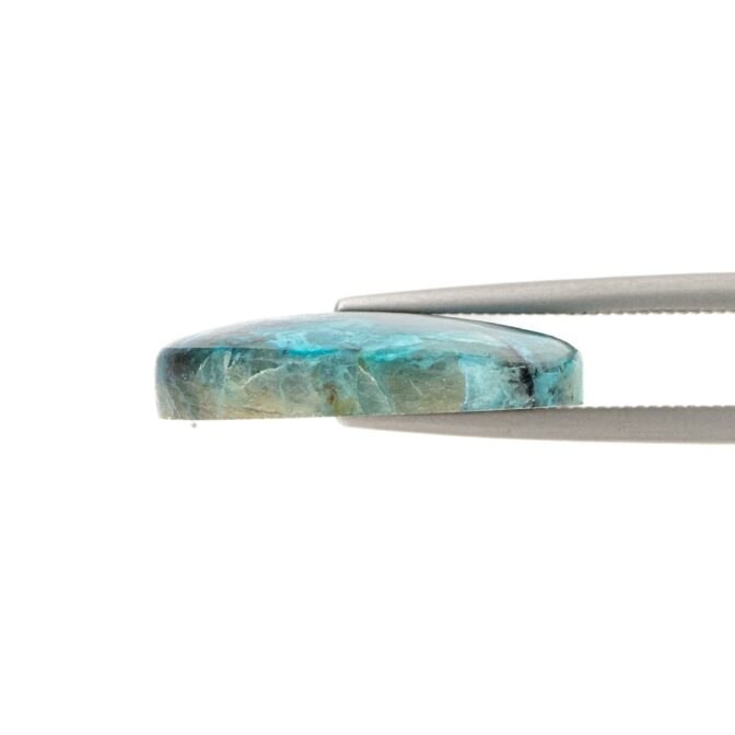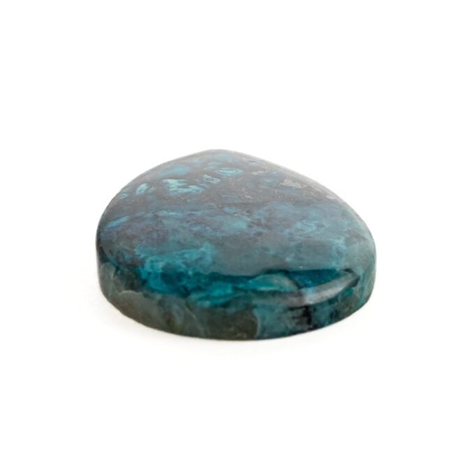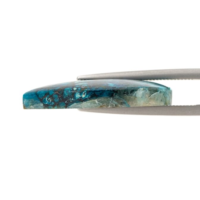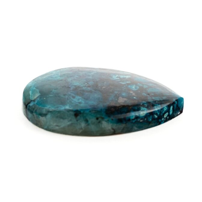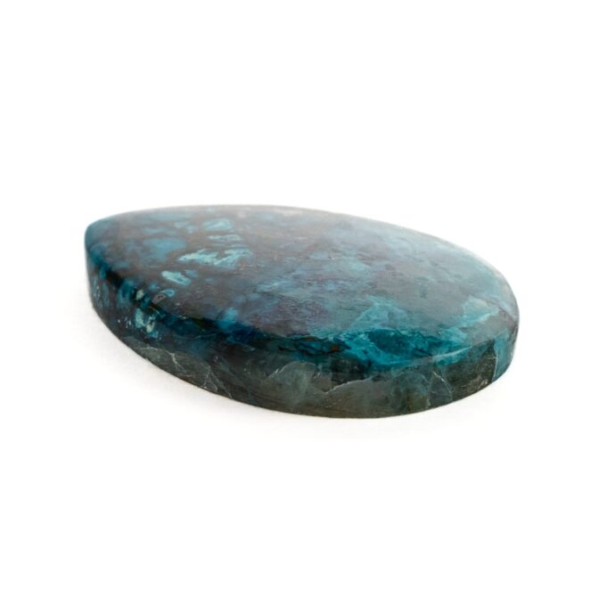 シャッタカイトは一見するとクリソコラそっくりで、外見で区別するのがとても難しいです。今回香港買い付けで出会ったたこちらのシャッタカイトも、最初はクリソコラだと思ってしまったくらい。クリソコラにしては透明感があるし、深くて濃いブルーもなんかちょっと違うような?と思って手に取ったら後ろにシャッタカイトと書いてありました。勘と経験に頼るのは、石屋さんとしてあまり良くないと思いつつ、経験に基づいた直感というものは、なかなかに侮れないな、と思ってしまいました。