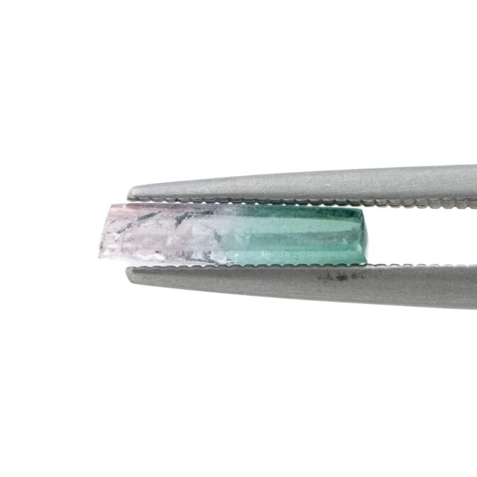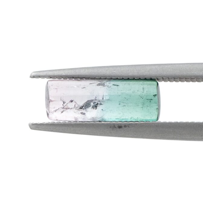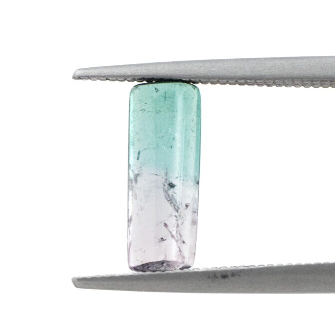 透明な輝きあふれるバイカラートルマリン。大粒でインクルージョンがあまりない透明な美しさは清々しく、柔らかなグラデーションが持つあたたかでまろやかな色合いは、見ているだけで忙しい日常をひと時忘れさせてくれます。細長いカットのルースは、色の移り変わりがしっかりと楽しめ、いつまでも眺めていたい誘惑に駆られます。多色性のある石なので、見る方向や角度によっても表情を変えるところが、たまらなく素敵なのです。