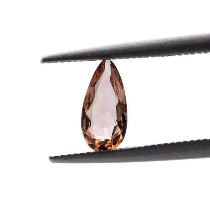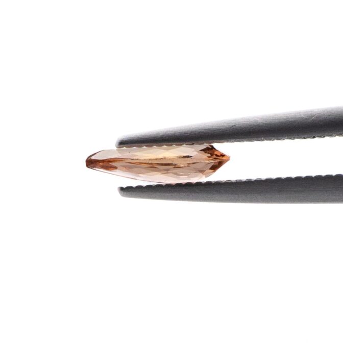 このページでご紹介しているインペリアルトパーズも、典型的なシェリー酒のカラー。濃く濁りのない色と細やかなカットが光を振りまきながら輝きます。細長くシャープな形状で鋭い光沢感ですが、ソフトな色合いのため、地金の種類やデザイン問わず、合わせやすい宝石でもあります。ジュエリーに仕立てる際は、デザインによってスィートにもクールにもできる懐の深さが魅力なのです。