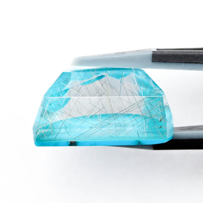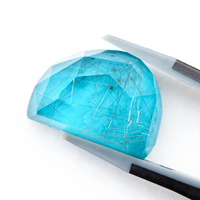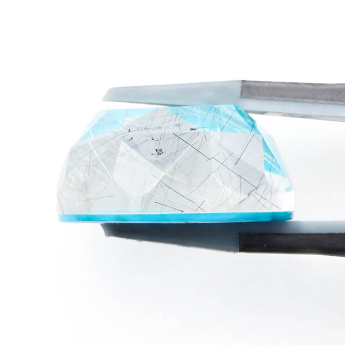 ダブレットストーンといえば、シェルやラピスラズリとクォーツを組み合わせたものがよく知られています。ルチルクォーツxターコイズの組み合わせはダブレットストーンとしてはなかなかにレア。カット面から鮮烈なブルーのターコイズに落ちかかる光と影がドラマティックなコントラストを生み出します。