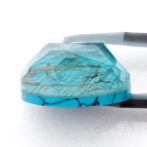 ルチルクォーツxターコイズのダブレットの中でも、落ち着いた色と輝きがひときわ目をひくルース。ややダークなトーンのターコイズブルーに漆黒のスパーダーウェブが張り巡らされ、金色銀色ルチルが石全体を美しく飾ります。一つの石の中に金と銀のルチルが入っているのがとても珍しく、かわいいだけではないキリリと精悍な力強さを感じます。