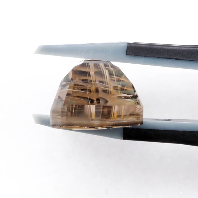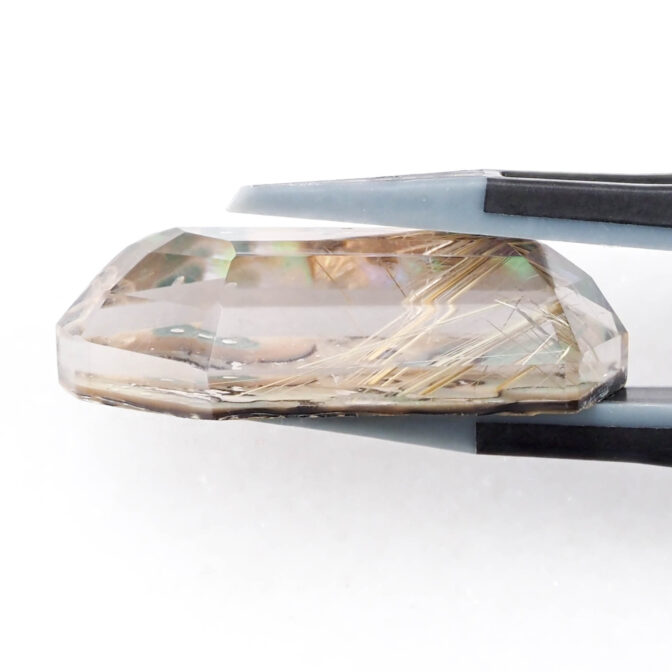 ルチルクォーツが好きな方の間では、ぎっしり入っているのが良い派と少ししか入ってない方が良い派に分かれるように感じます。このページでご紹介しているルチルクォーツxパウアシェルのダブレットストーンは、ルチルが少ないタイプ。パウアシェルのミステリアスな模様をそのクリアな透明感と輝きで、この上なく美しく引き立てます。それでいて少し角度を変えると、それまで隠れていたルチルが驚くほど鮮明に存在を主張しだし、ルチル好きにはたまらない美しさ。真っ直ぐにパウアシェルに向かって伸びる力強さはまるで太陽光線が突き刺さったかのよう。光を浴びて眩しくきらめく極上のダブレットストーンです。