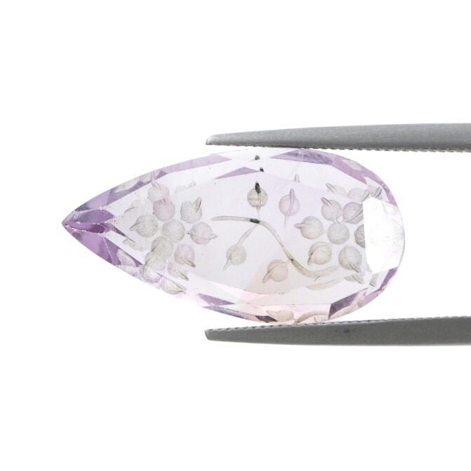 【生命を宿す、柔らかな花びら。植物を閉じ込めたようなアメトリン・インタリオ】