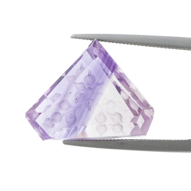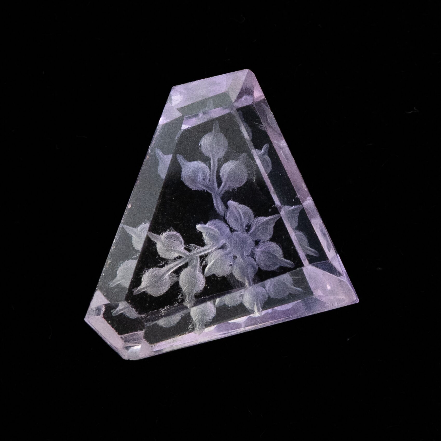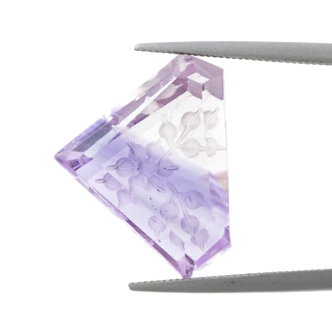 【生命を宿す、柔らかな花びら。植物を閉じ込めたようなアメトリン・インタリオ】
