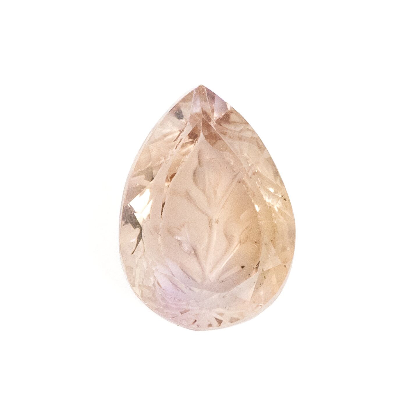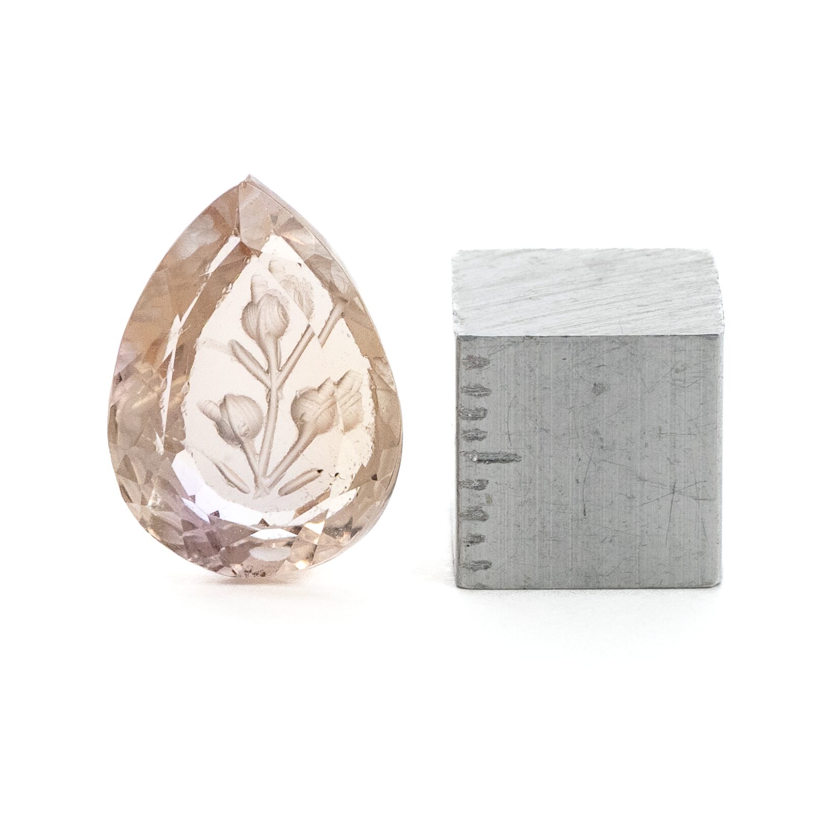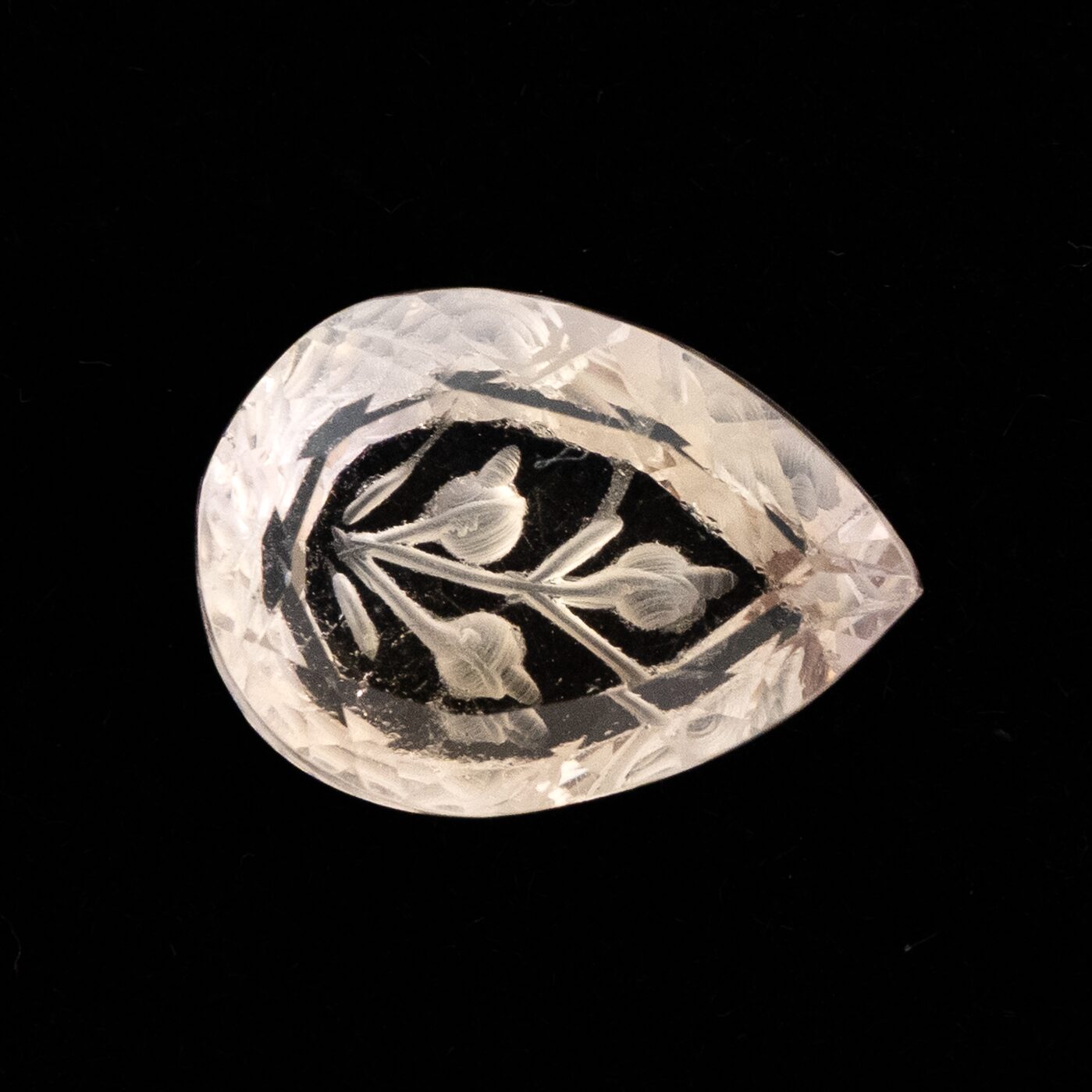 今回セレクトしたのは、この精緻な彫りを一切邪魔しない、極めてクリアな原石から研磨されたルースのみ。 フリーカットの直線的なシェイプが、花の柔らかさをより一層引き立てる力強いコントラストを生んでいます。